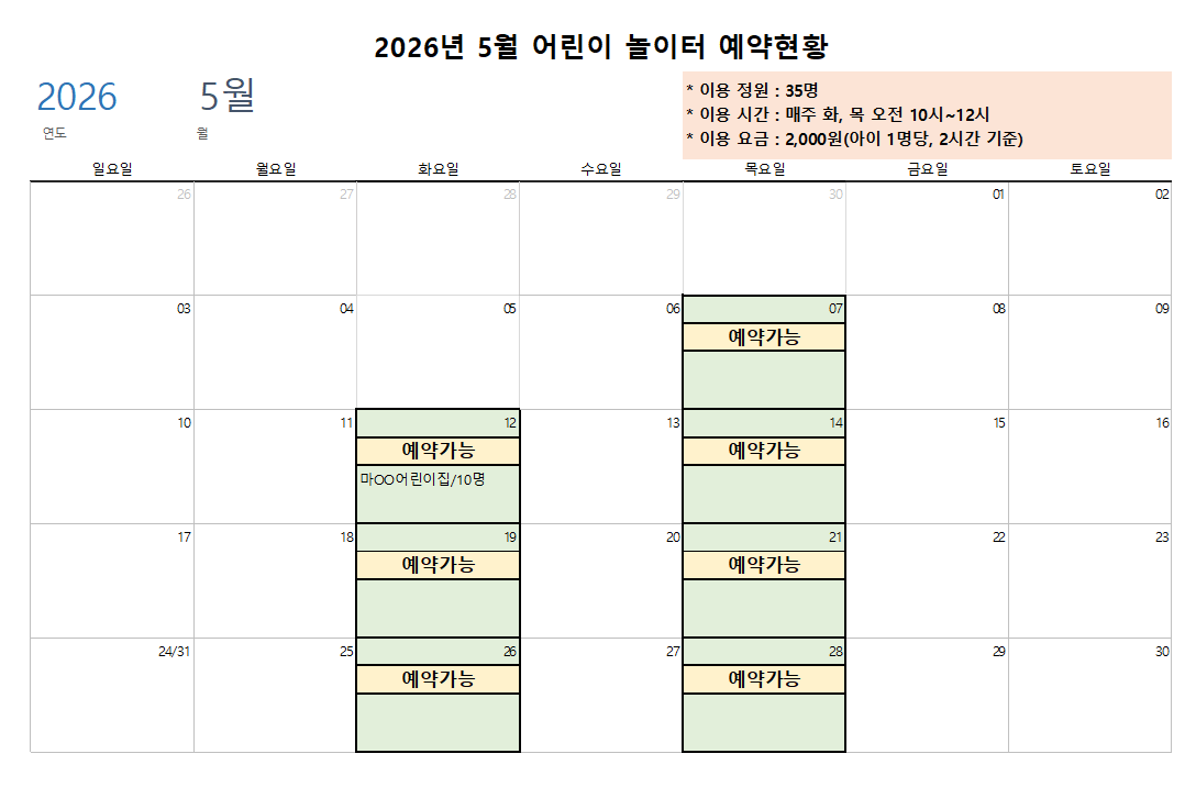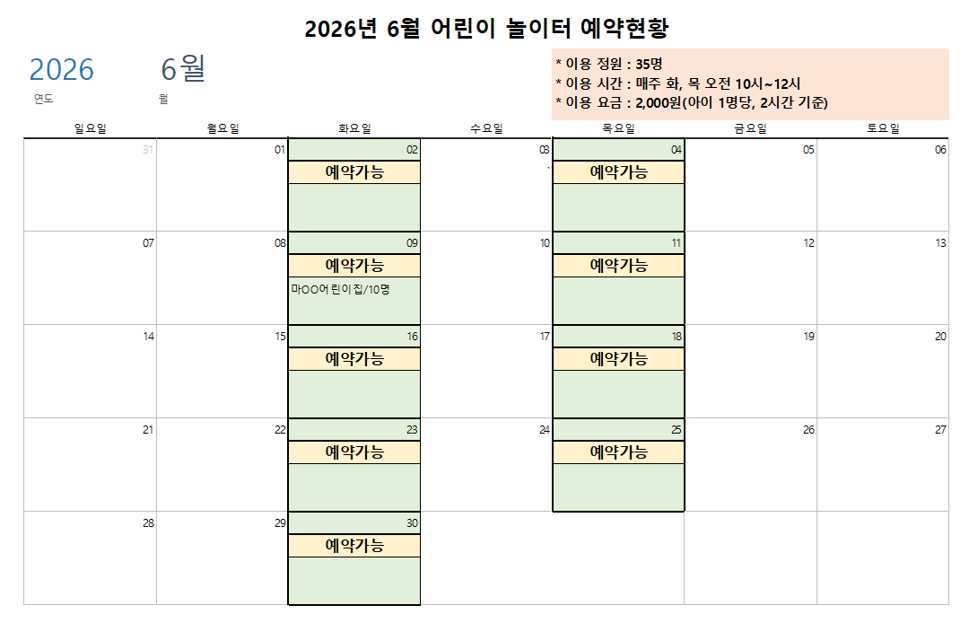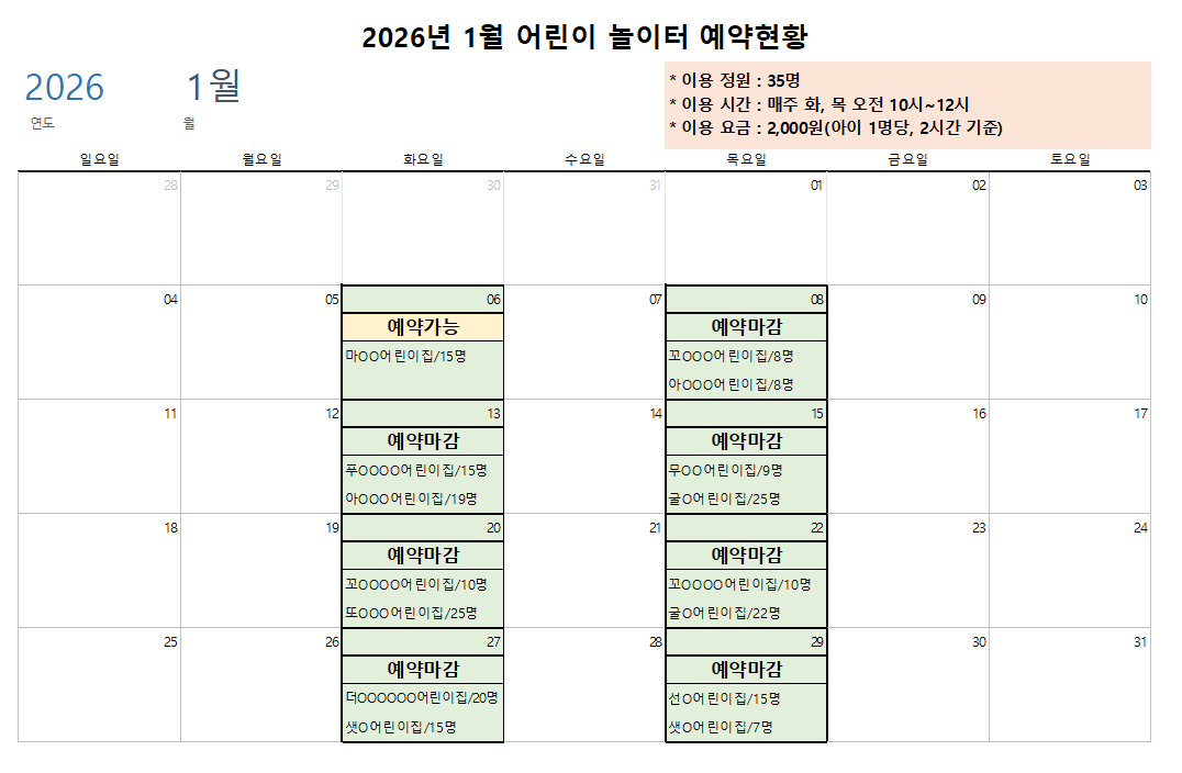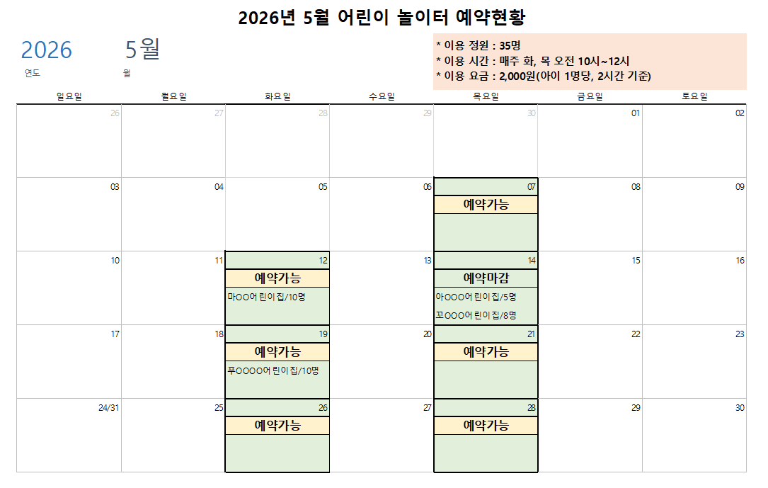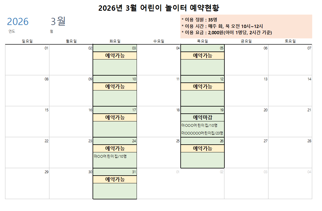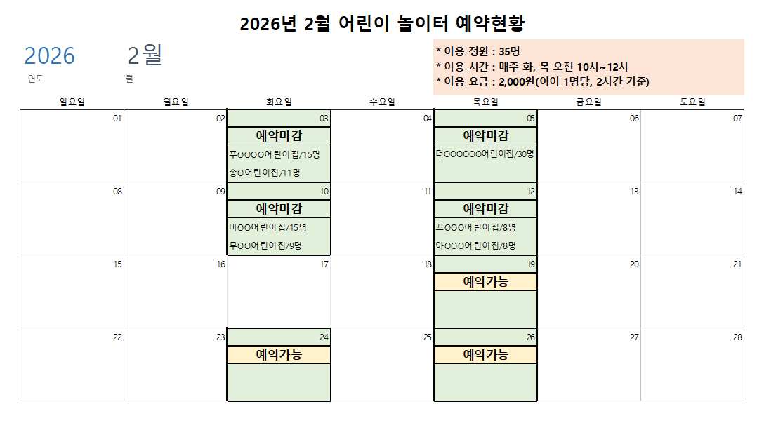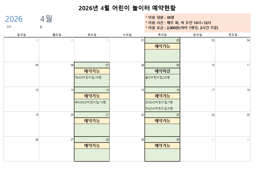 아이들이 행복한 꿀잼놀이터 예약 현황