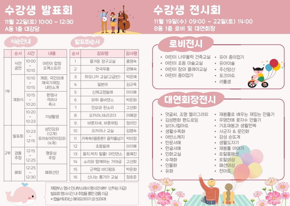 2025년 수강생 활동보고회(전시회, 발표회 및 체험부스) 안내
